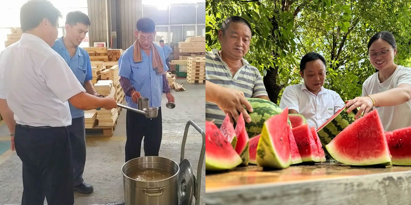 前程公司歷年來,每逢高溫都會在每個車間配備藿香正氣水、鹽汽水、冰紅茶等飲料供員工隨時自取,公司食堂也推出清爽不油膩的“夏季專屬”菜品,并每天提供綠豆粥。另外,公司行管代表也齊上陣為一線員工提供“切西瓜送清涼”的人性化服務(wù),把清涼和關(guān)懷送到每一位一線員工的心坎上。