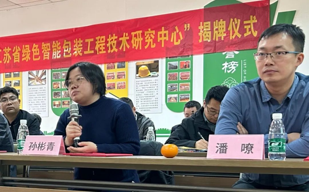 隨后徐穎總經(jīng)理與行業(yè)專家及教授們共同為“江蘇省綠色智能包裝工程技術(shù)研究中心”揭牌,并為專家教授團(tuán)隊及研究中心主要負(fù)責(zé)人授聘書。